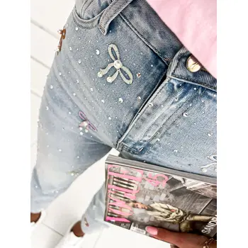 Vysoko-pásové rifle zdobené kamienkami a korálikmi