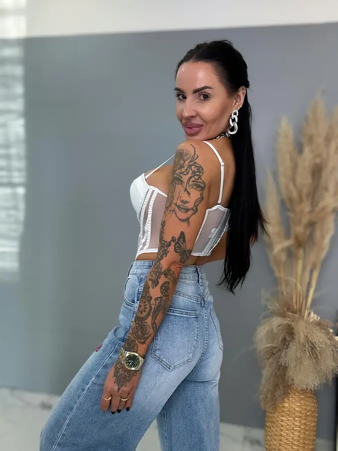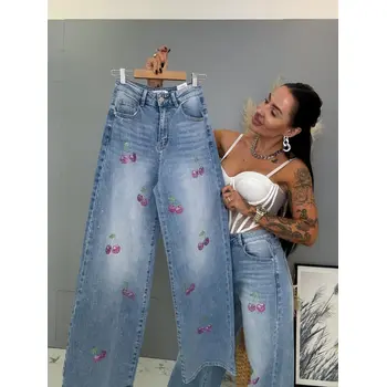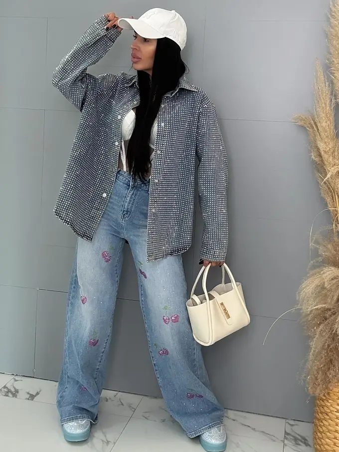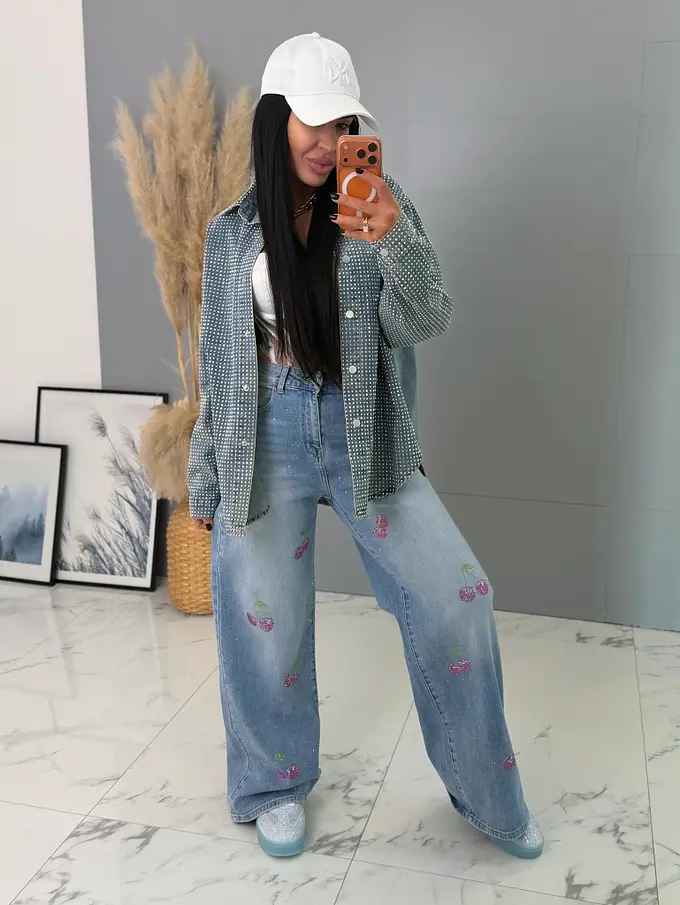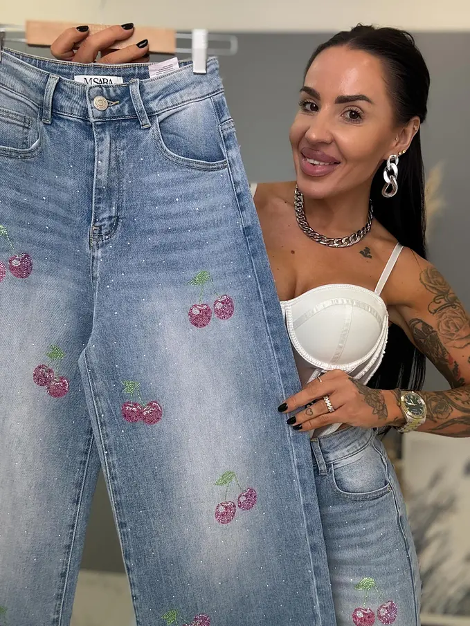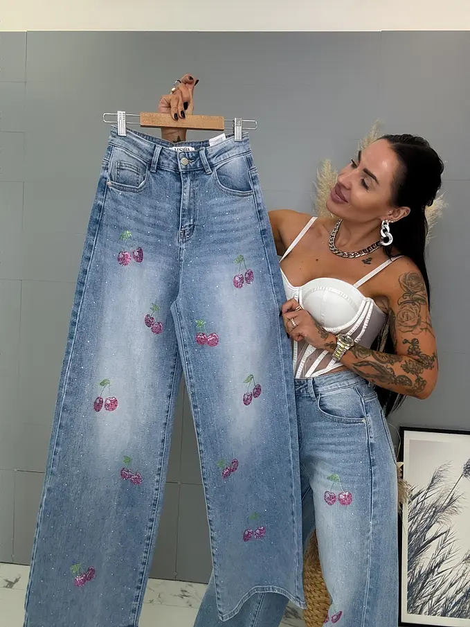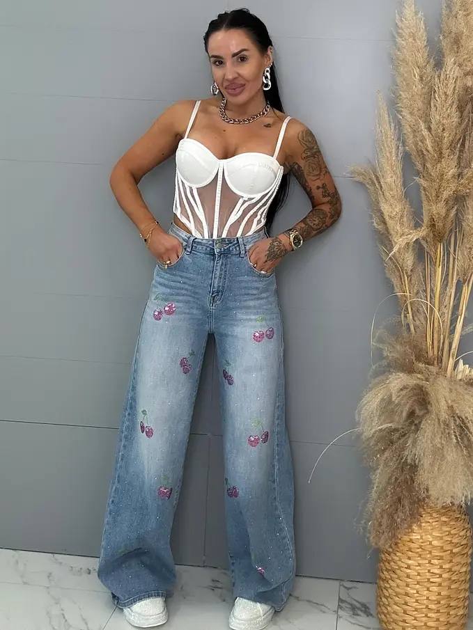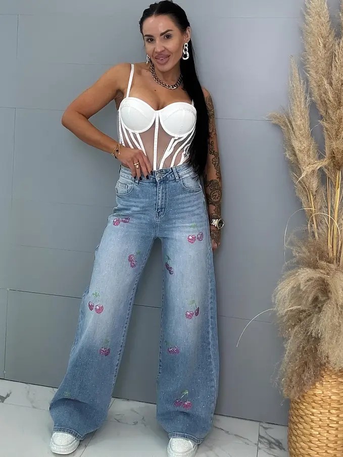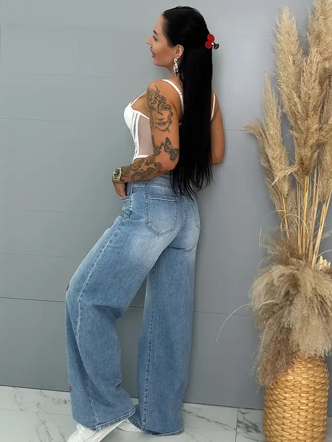Vysokopásové palazzo rifle zdobené kamienkami