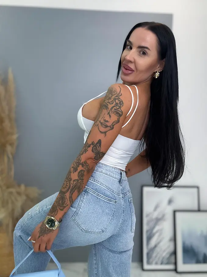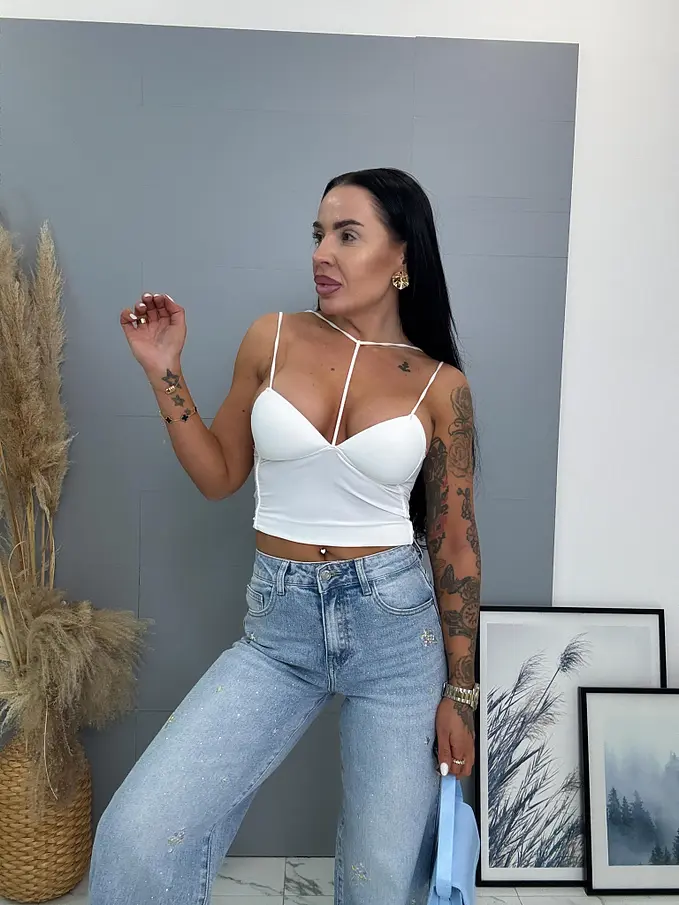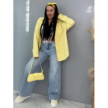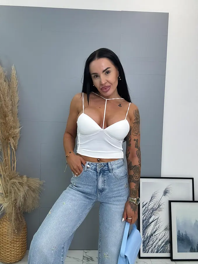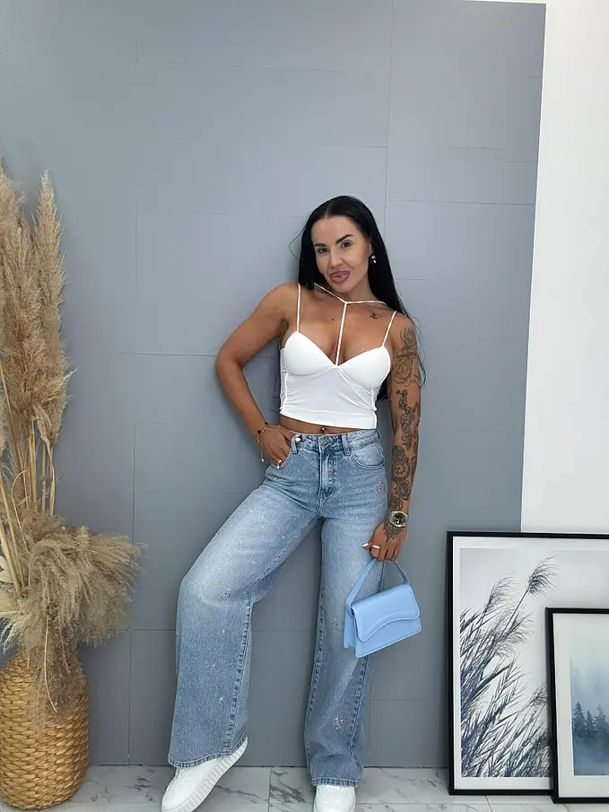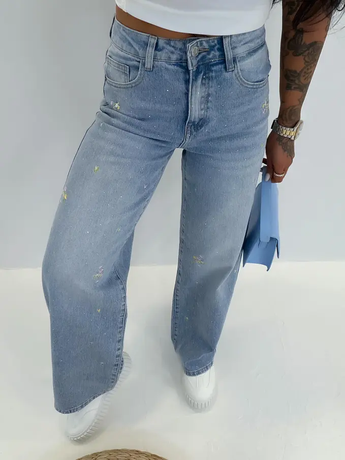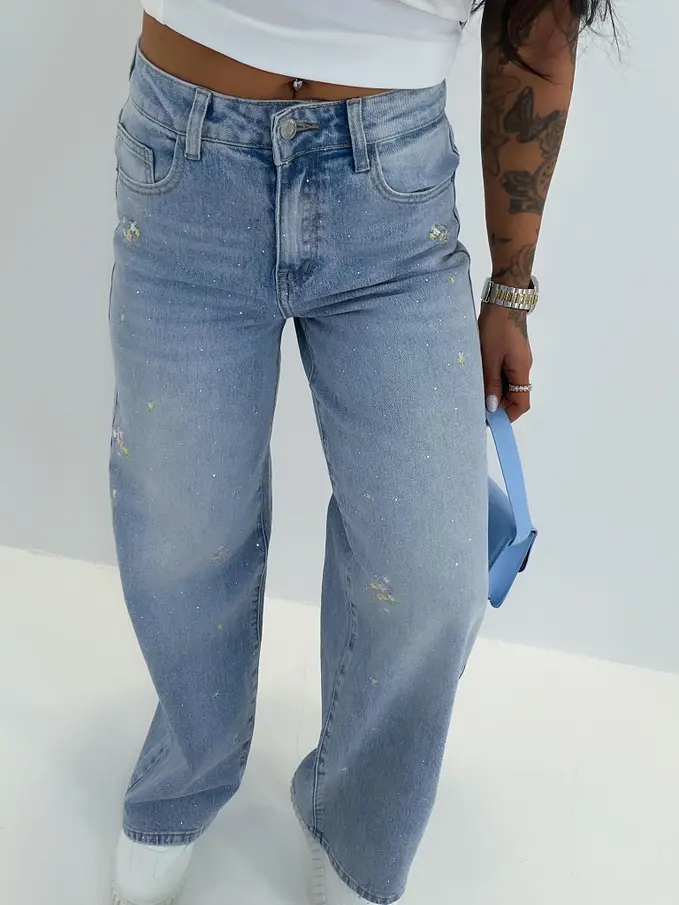 Vysokopásové vyšívané wide leg rifle s kamienkami