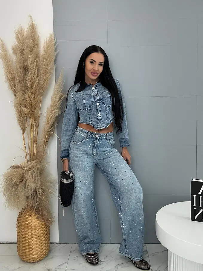 Modelka meria 164 cm a váži 57 kg. Má na sebe veľkosť S