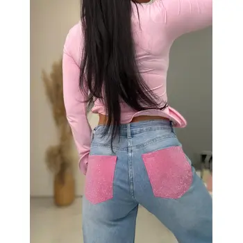 Vysokopásové wide leg rifle zdobené kamienkami na vreckách
