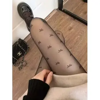 Vzorované čierne pančuchové nohavice-