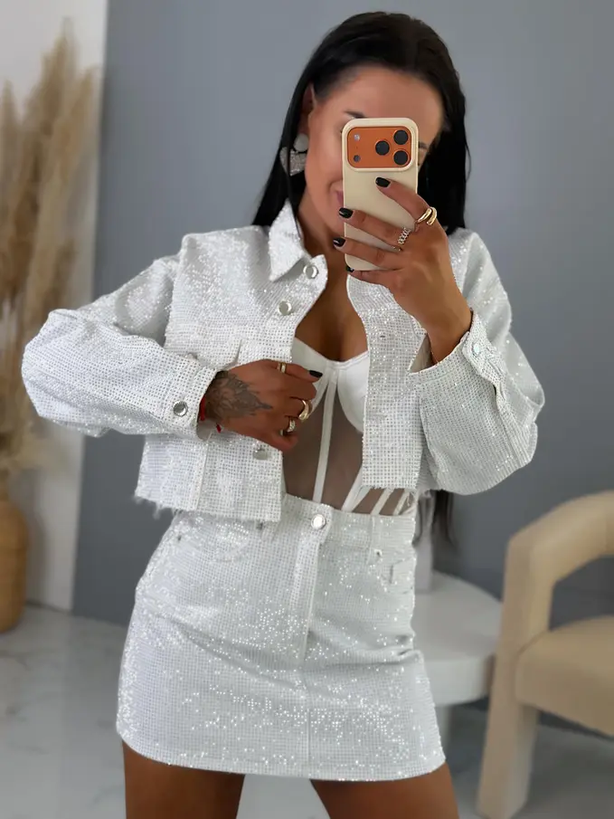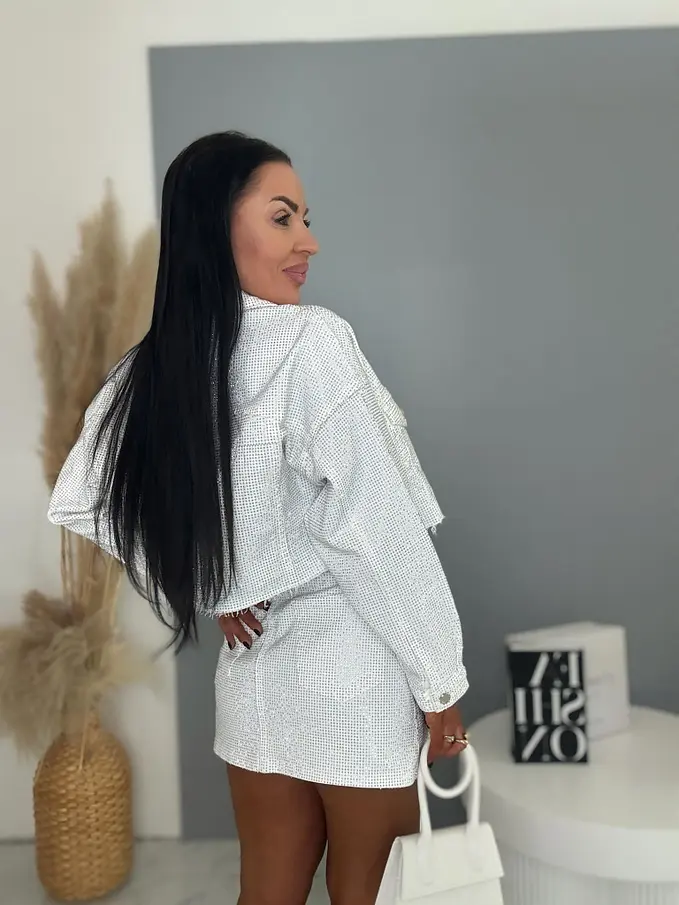 White crop denim jacket s kamienkami ICE CRYSTAL