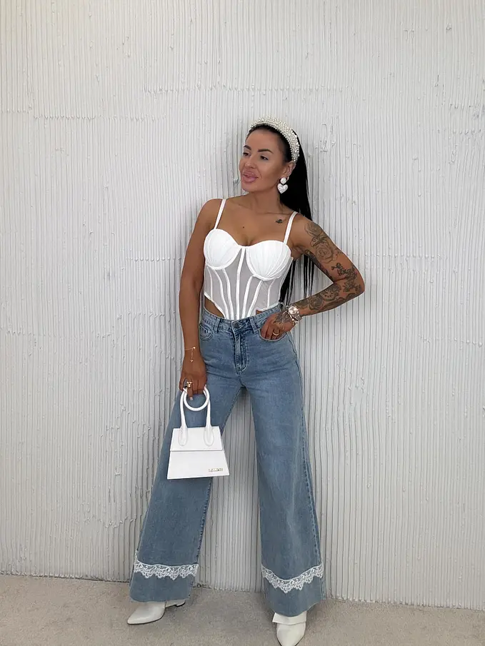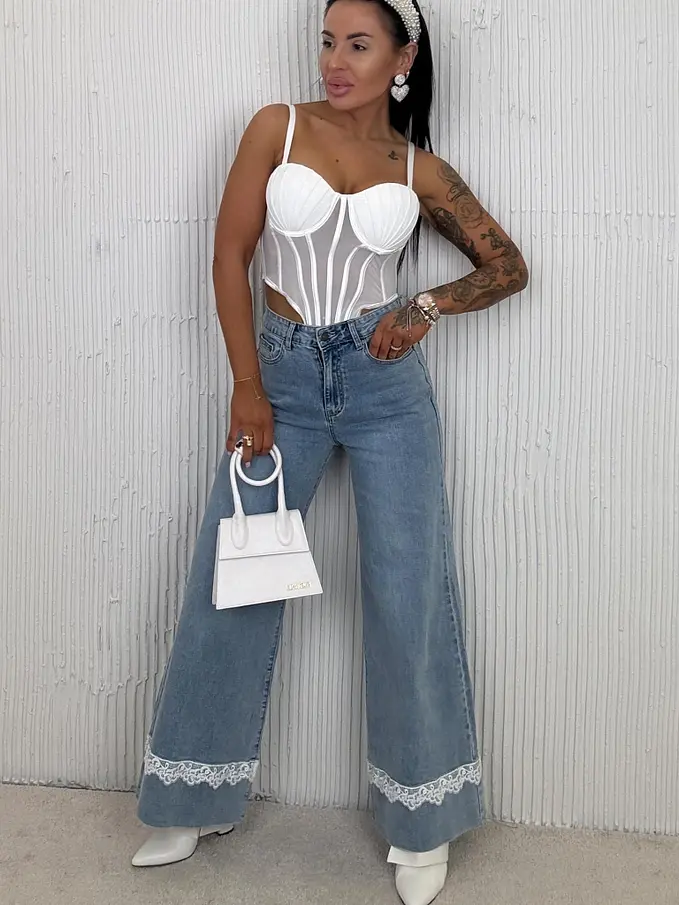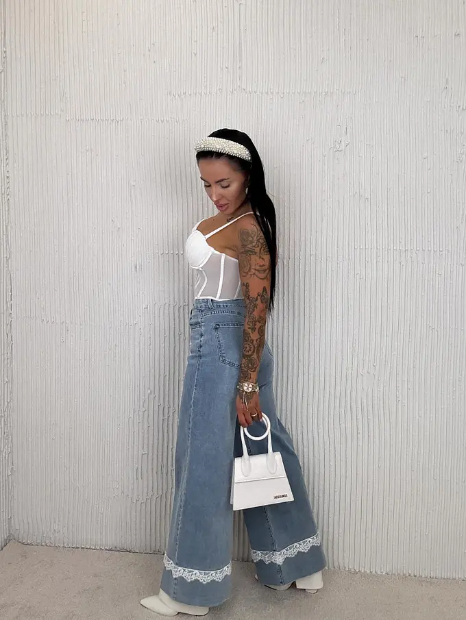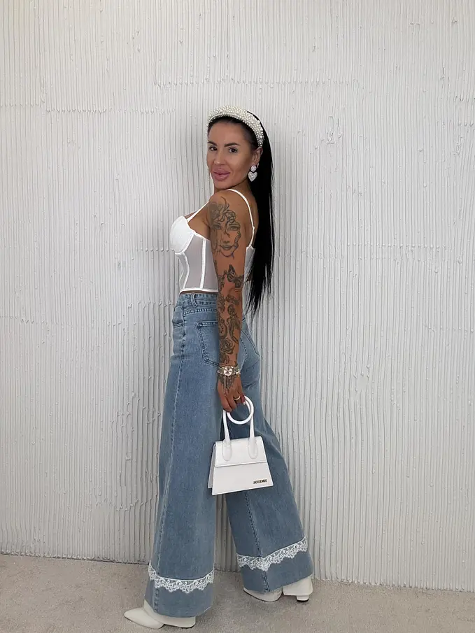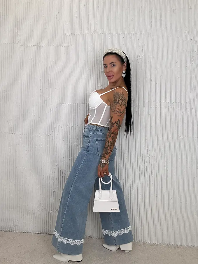Premium kvalita. Nohavice majú vysoký pás. Materiál je príjemný, elastický. S ozdobnými čipkami. Gombík je striborný.