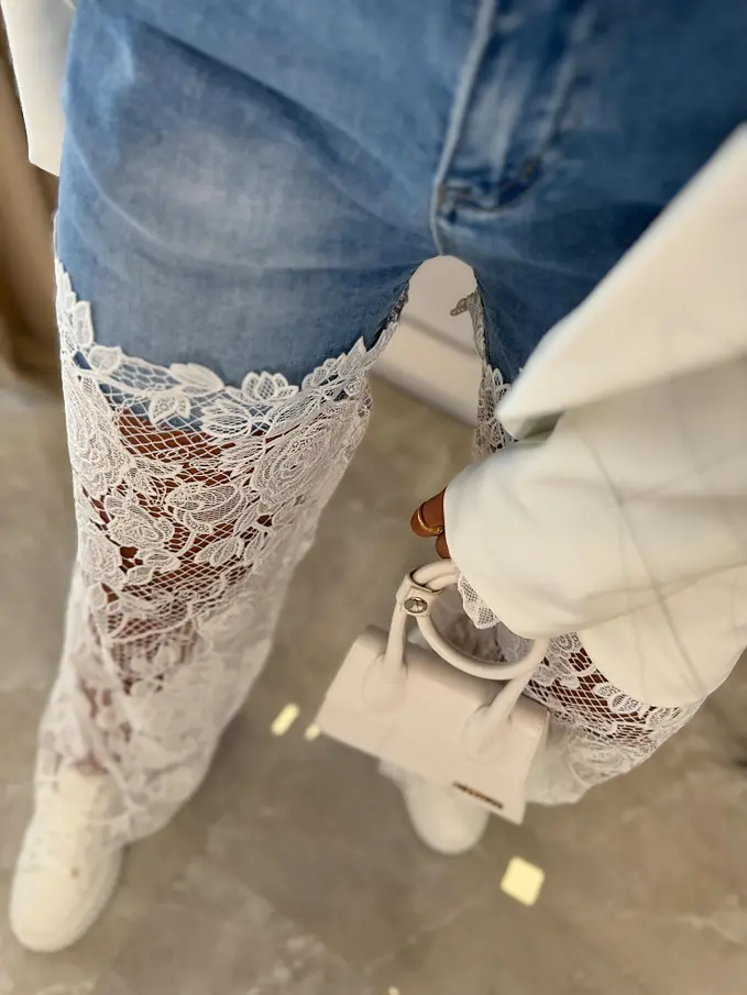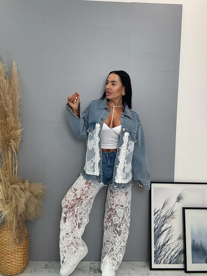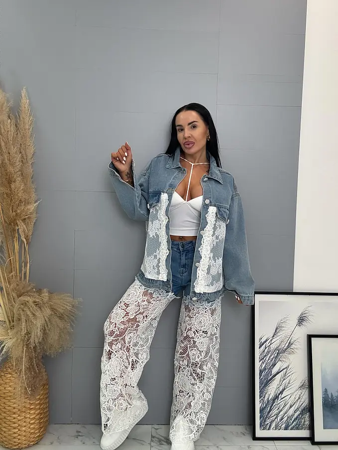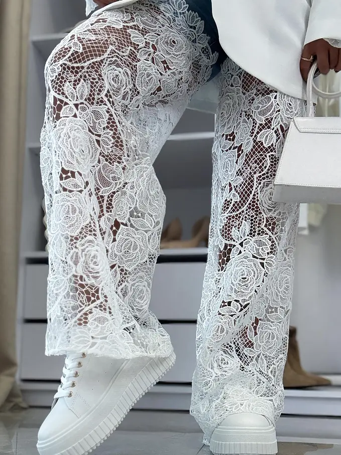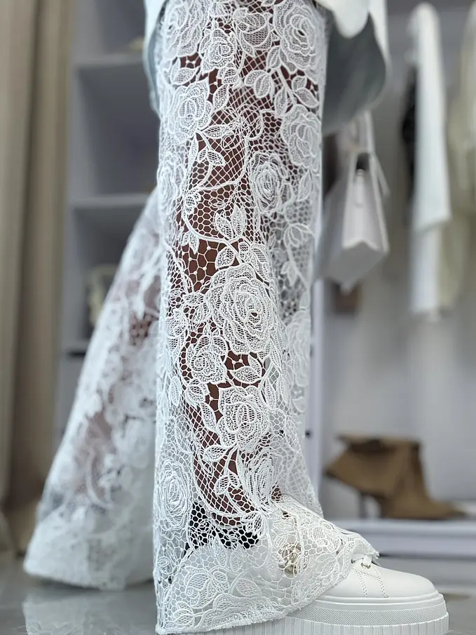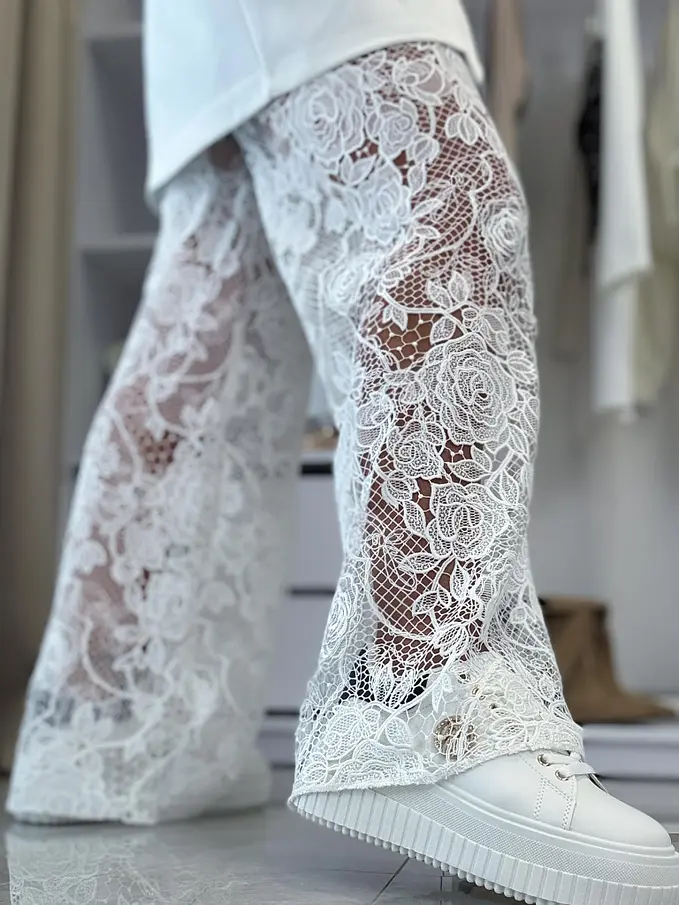 Wide-leg rifle s čipkovým detailom ERMINA