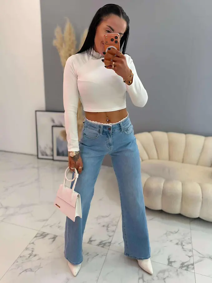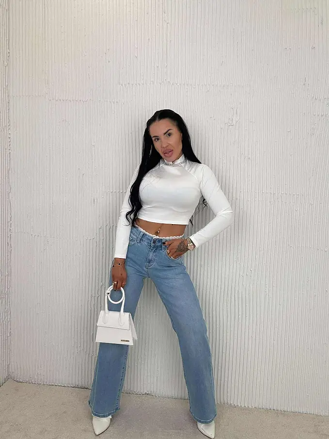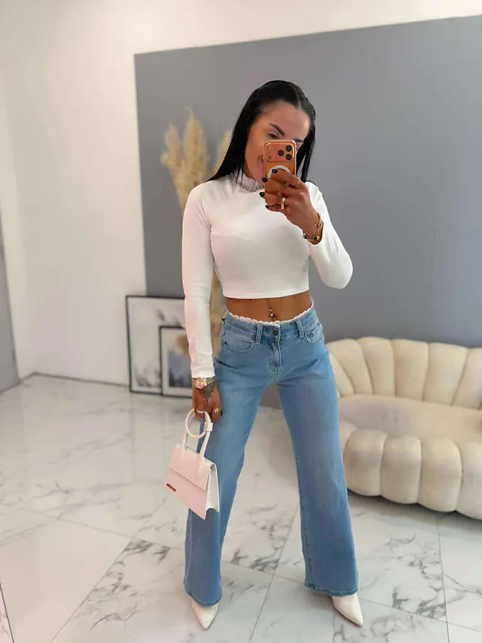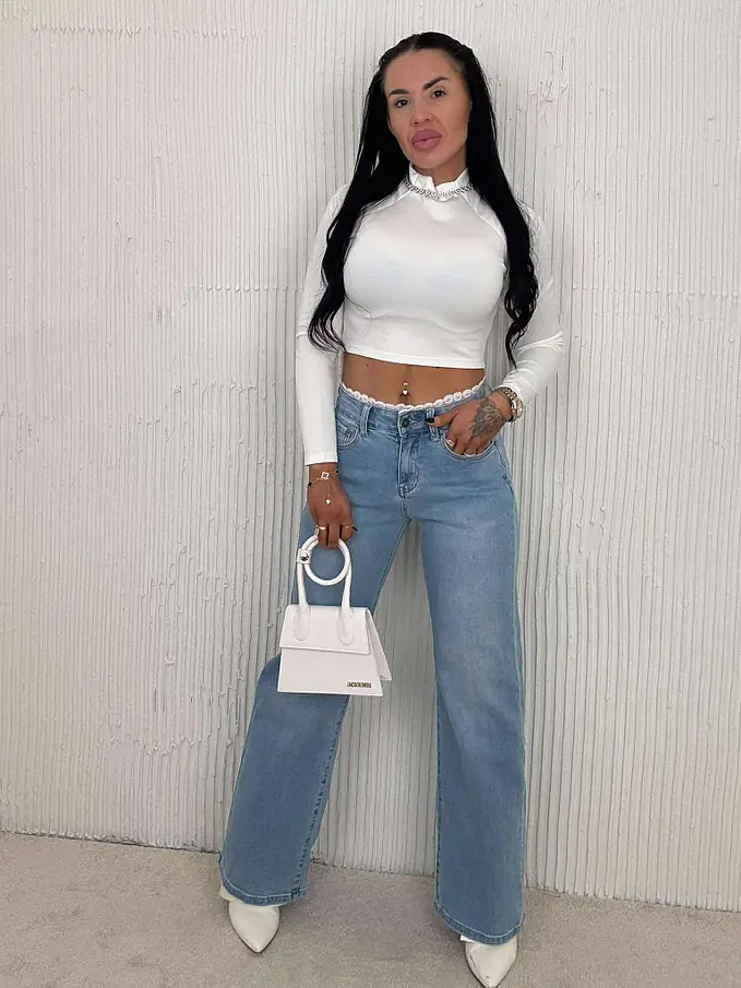 Premium kvalita. Nohavice majú vysoký pás. Materiál je príjemný, elastický. S ozdobnými čipkami v páse. Gombík je striborný.