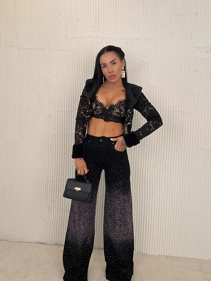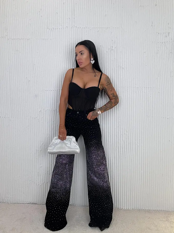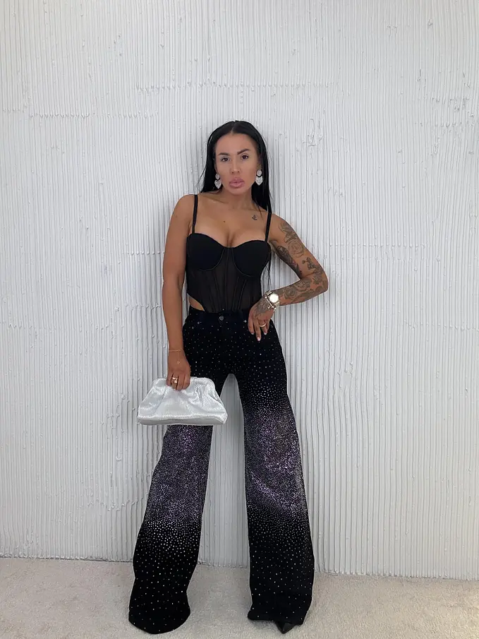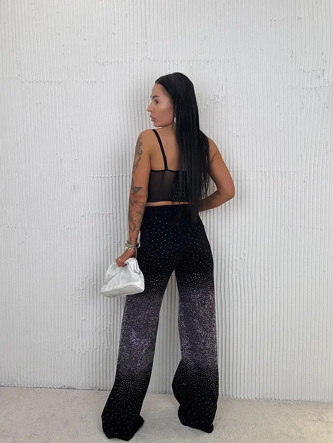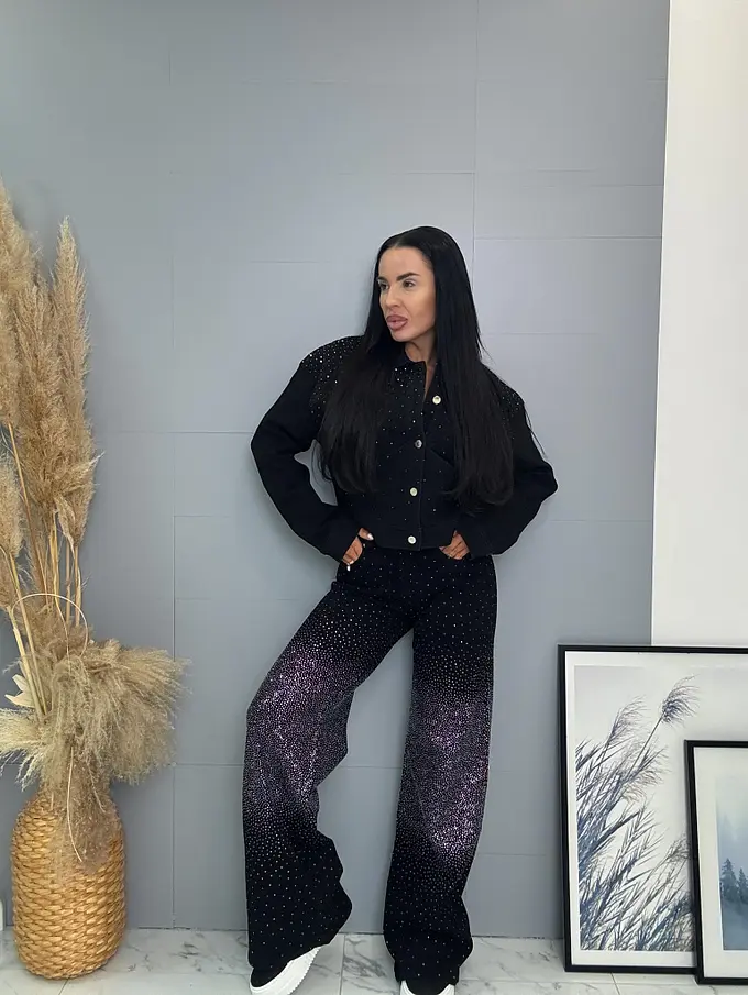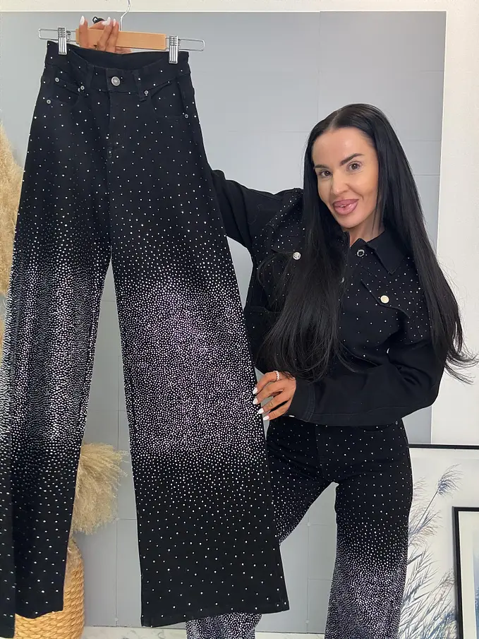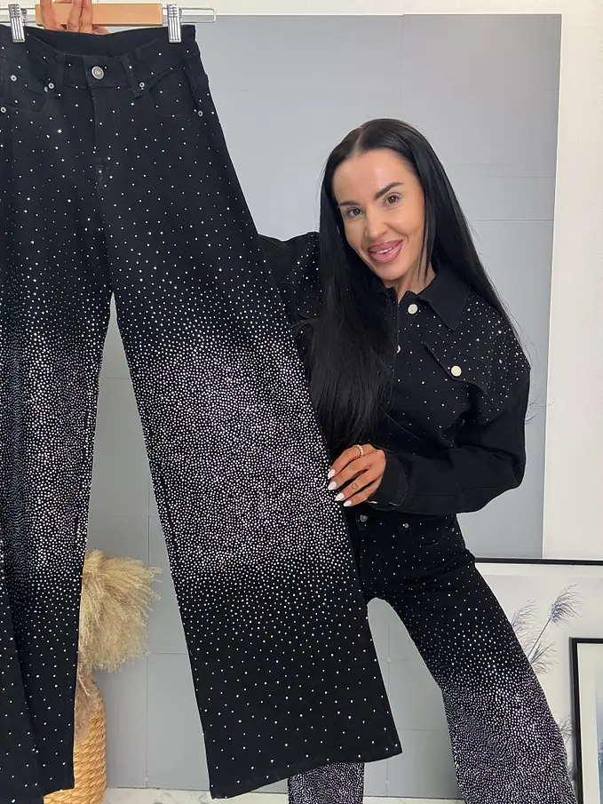 Premium kvalita. Nohavice majú vysoký pás. Materiál je príjemný, a mierne elastický. Jemné kamienky po celej ploche.