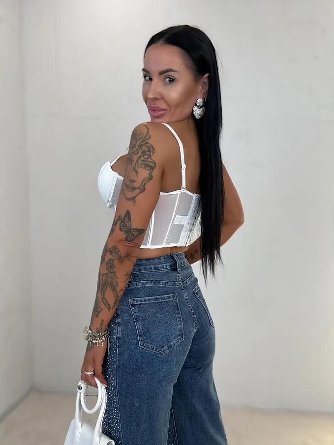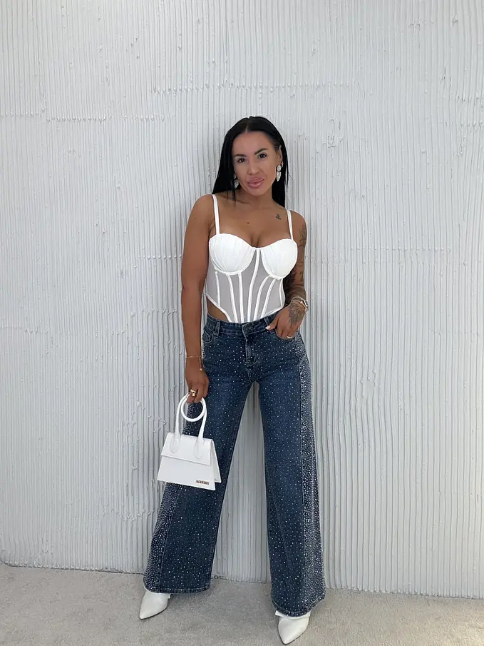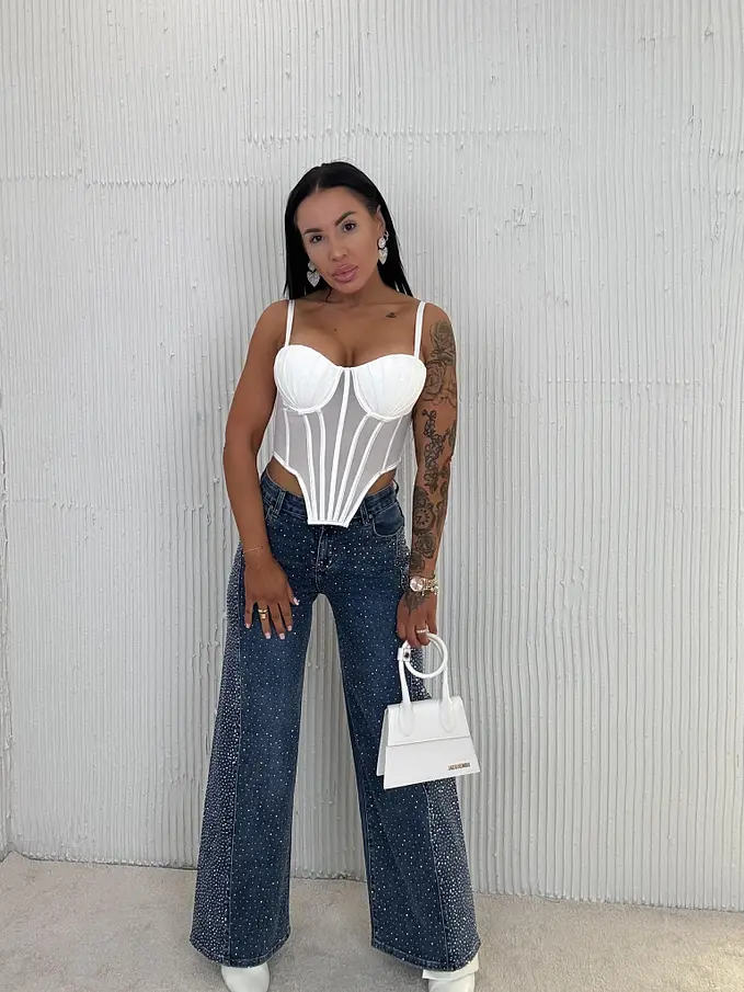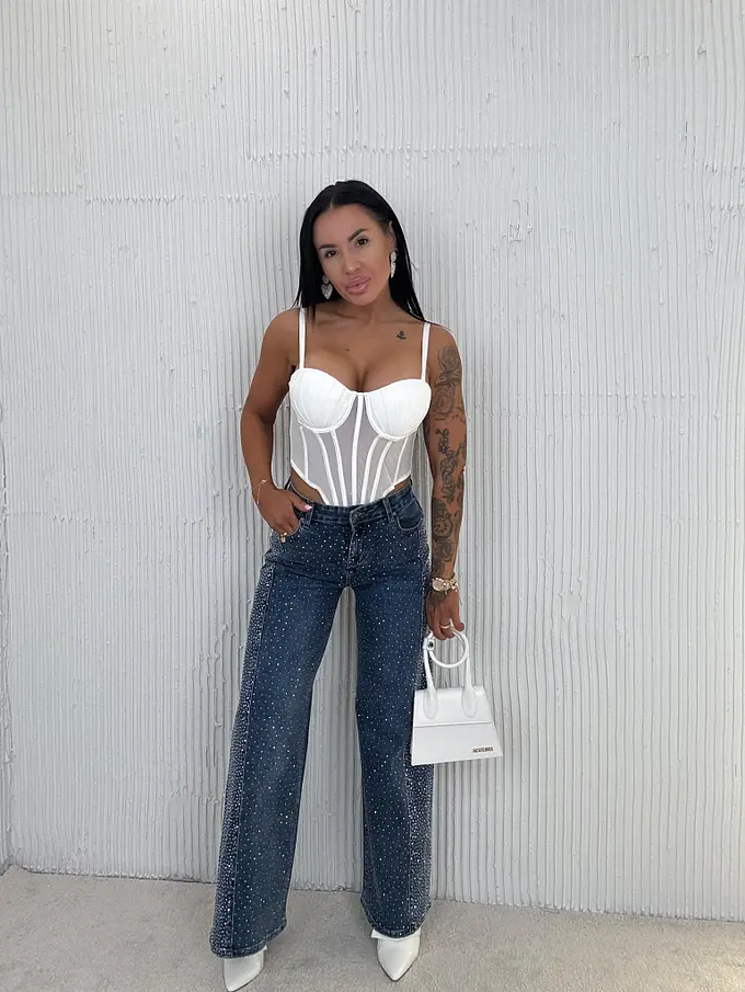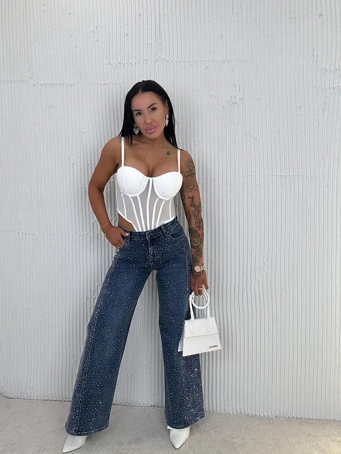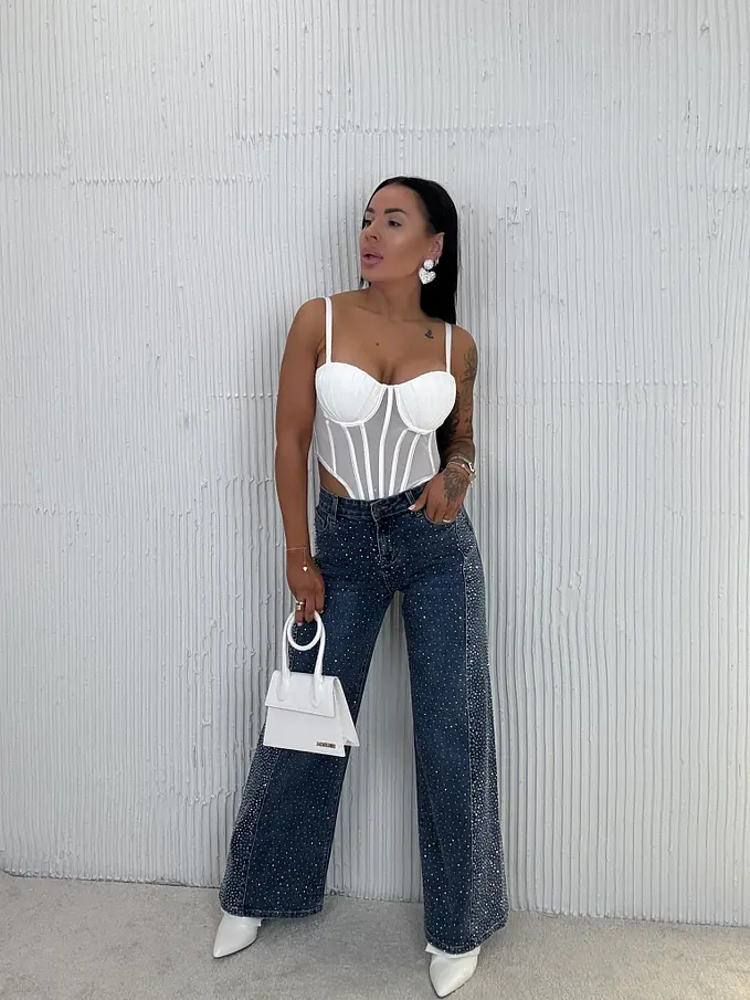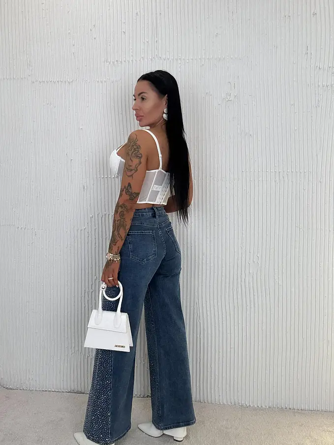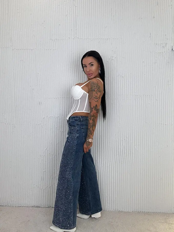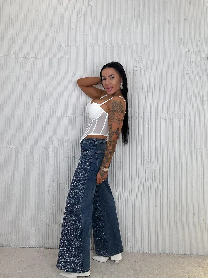 Premium kvalita. Nohavice majú vysoký pás. Materiál je príjemný, a mierne elastický. Jemné kamienky po celej ploche.