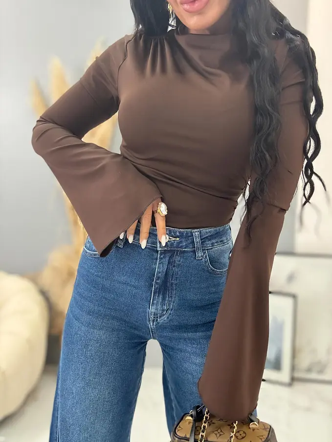 Modelka čiernovláska meria 164 cm a váži 57 kg. Nosí veľkosť XS.