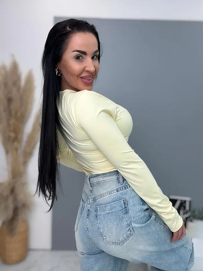 Modelka meria 164 cm a váži 57 kg.
