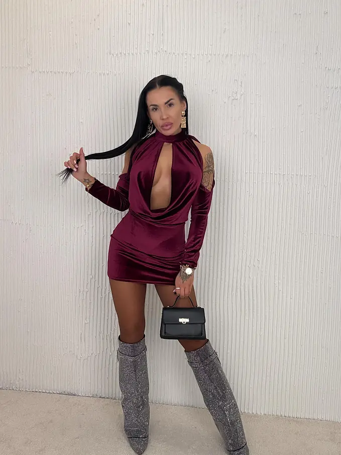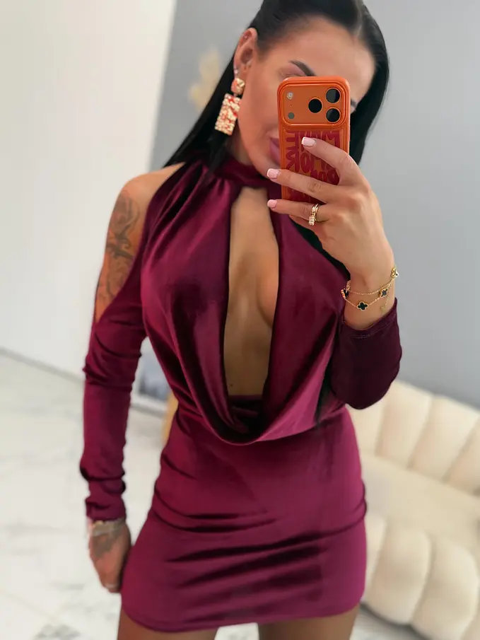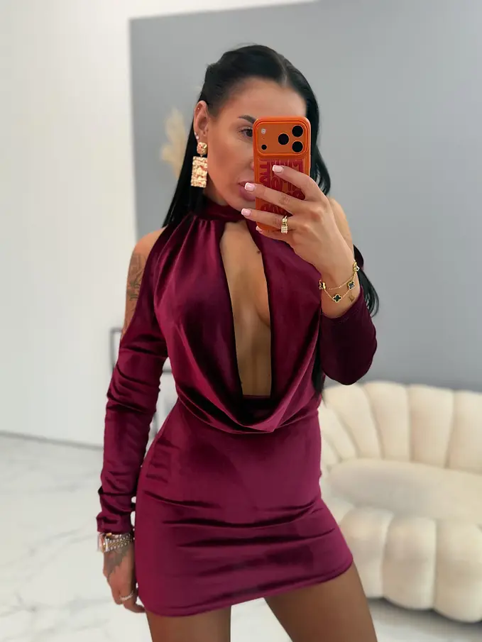 Elegantné zamatové šaty. Materiál je elastický. Vzadu zapínanie na gombíky.