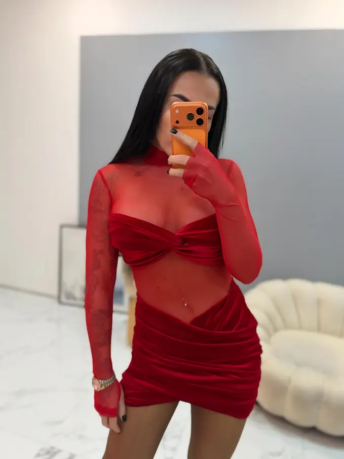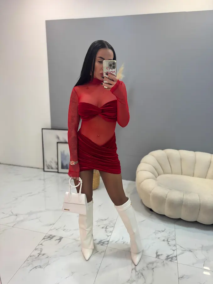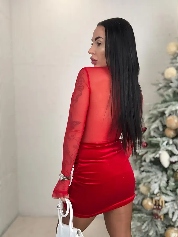 Elegantné zamatové šaty kombinované so šifónom. Materiál je minimálne elastický.
