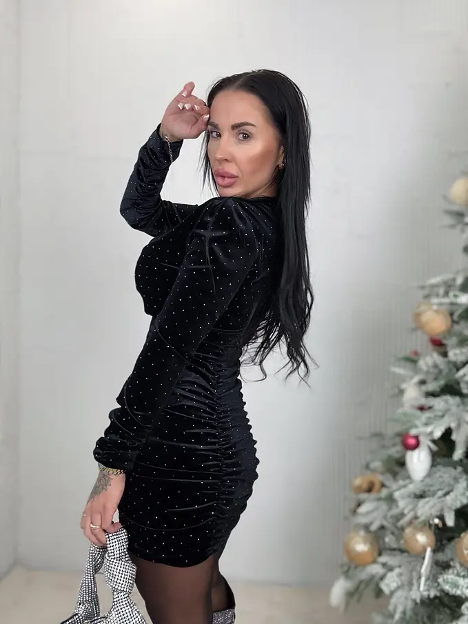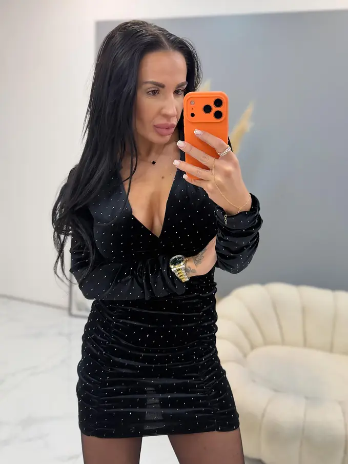 Zamatové šaty s kamienkami NELISIA