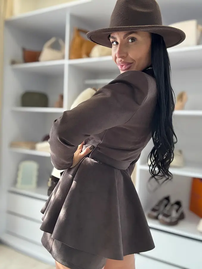 Zamatový overal s volánikmi a zlatými gombíkmi AGNES