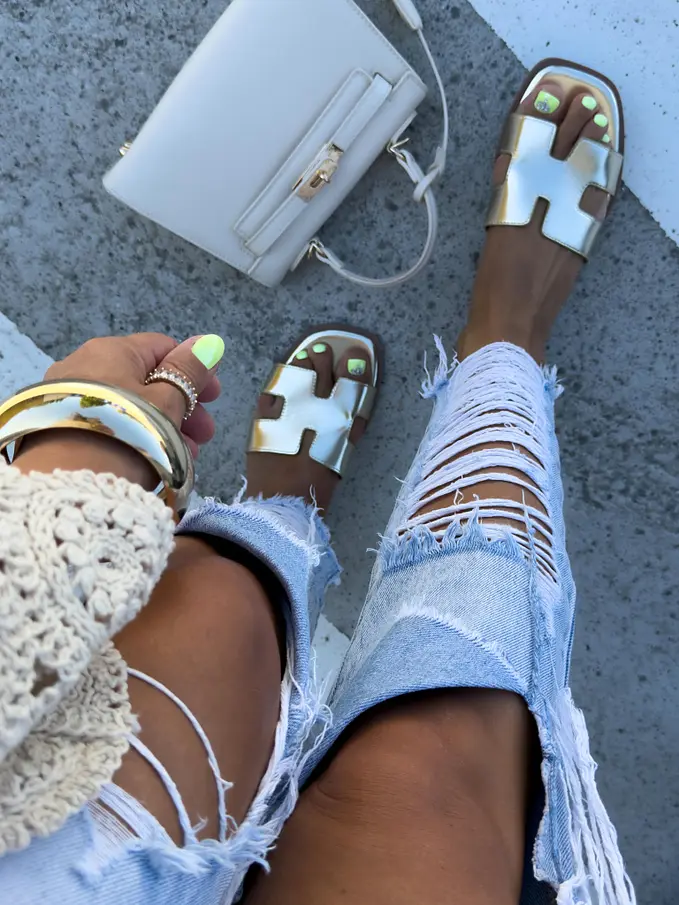 Zlaté dámske šľapky MEREDITH-